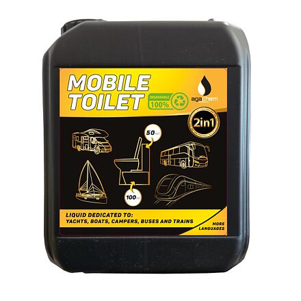 Univerzální přípravek pro všechny nádrže chemického WCUniverzální WC chemie AgaChem 2v1 5 l je vhodná pro přenosné i vestavné chemické toalety. Lze ji nalít do spodní nádrže, splachovací nádrže, a dokonce i nádrže na šedou vodu. Prostředek je účinný při teplotách od –20 až do +40 °C.WC chemie AgaChem 2v1 příjemně voní, snižuje tvorbu plynů, usazenin a nepříjemného zápachu uvnitř toalety. Vytváří modrý ochranný film, který prodlouží životnost toalety.Klíčové vlastnosti chemie AgaChem 2v1 pro mobilní a suché toalety:Účinnost při teplotách –20 až +40 °C.Účinnost při průměrné teplotě 27 °C je přibližně 15 dní.WC chemie neobsahuje biocidy.Snižuje tvorbu plynů, usazenin a nepříjemného zápachu.Urychluje rozklad odpadu ve WC kazetě.AgaChem 2v1 zanechává po sobě příjemnou vůni.Vytváří modrý ochranný film.Zabraňuje usazování nečistot na vnějších stěnách nádrže a rozvoji bakterií.Dávkování:hlavní nádrž: 100 ml přípravku na 20 l vodysplachovací nádrž: 50 ml přípravku na 10 l vodyodpadní kazeta: 50ml přípravku na 20 l vodyParametry chemie AgaChem 2v1 pro mobilní a suché chemie:obsah: 5 l