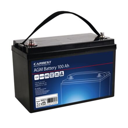 Akumulátor Carbest AGM Power LineBaterie Carbest AGM Power Line s hlubokým cyklem je speciálně vyvinutá jako servisní baterie pro rekreační vozidla. Díky velmi dobré stabilitě cyklu a nízkému samovybíjení je ideální pro použití v obytných automobilech a na lodích. Díky kompaktním rozměrům se vejde do běžných úložných přihrádek pro baterii. Baterie je zcela bezúdržbová a mrazuvzdorná do -40 °C. Může být instalována v různých polohách, např. na boku nebo nastojato (poloha dnem vzhůru se nedoporučuje). V souladu s nařízením EU lze AGM baterii instalovat v obytném prostoru. Součástí dodávky jsou terminály se šrouby pro připevnění.Vlastnosti baterie Carbest AGM Power Line s hlubokým cyklem:Ideální pro použití v obytných automobilech a na lodích.Díky vysoké stabilitě cyklu je vhodná i pro solární systémy.Má nízké samovybíjení.Je zcela bezúdržbová.Je mrazuvzdorná do -40 °C.Lze instalovat na boku nebo nastojato.Lze instalovat v obytném prostoru.Parametry:jmenovité napětí: 12 Vpočet článků: 6Kód produktu: 850534850529850535850531850536850537Kapacita:60 Ah80 Ah90 Ah100 Ah120 Ah134 AhVybíjecí proud max.:600 A (5s)750 A (5s)800 A (5s)900 A (5s)950 A (5s)950 A (5s)Nabíjecí proud max.:18 A24 A27 A30 A36 A40,2 ARozměr terminálů:M6M6M6M8M8M8Délka:25,9 cm35 cm30,6 cm33 cm32,9 cm33,9 cmŠířka:21,3 cm16,7 cm16,8 cm17,1 cm17,3 cm17,5 cmVýška:16,6 cm17,9 cm21,5 cm22,2 cm21,9 cm28,5 cmHmotnost:23,5 kg22,5 kg29 kg29 kg33,5 kg42,5 kg