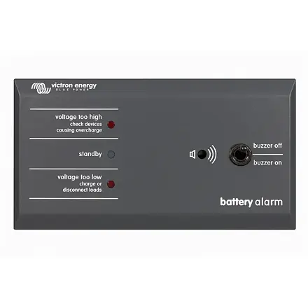 Sledování stavu baterieBateriový alarm Victron Energy Vás upozorní pomocí LED diod i zvukově na dosažení nastavených hodnot napětí sledovaného akumulátoru.Klíčové vlastnosti alarmu pro baterie Victron Energy:Můžete sledovat přebíjení a zároveň nízký stav nabití baterie.Samostatné LED diody indikují přebíjení a nízký stav akumulátoru.Zvukový alarm můžete pomocí páčkového vypínače deaktivovat.Nastavování hodnot napětí, při kterých se má alarm spustit, se provádí mechanicky pomocí DIP přepínačů.Parametry akumulátorového alarmu Victron Energy:určeno: pouze pro akumulátory s pracovním napětím 12 V a 24 Vmontáž: do zdi, elektrokrabice a pod.