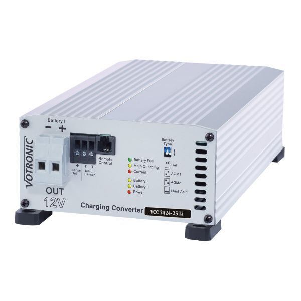 Plně automatický měnič pro nabíjení LiFePO4 baterií za jízdyBooster VOTRONIC VCC Li je specializovaný nabíjecí měnič pro lithiové baterie typu LiFePO4, který byl vyvinut pro použití v obytných automobilech, speciálních vozidlech a v námořním sektoru. K dispozici je ve dvou variantách s nabíjecím proudem 25 A nebo 45 A, přičemž zajišťuje efektivní a bezpečné nabíjení i během jízdy.Díky inteligentnímu mikroprocesorovému řízení s charakteristikou IU1oU2oU3 dokáže měnič plně nabít baterii a udržet ji na 100 % bez rizika přebíjení, a to i během dlouhých cest. Je kompatibilní i s kombinovanými systémy 12 V / 24 V – umožňuje například nabíjet 12V LiFePO4 baterii ze 24V startovacího systému bez potřeby dalšího alternátoru. Galvanické oddělení zajišťuje úplné oddělení obvodů i při poruše, a zabraňuje rušení elektrického systému.Zařízení je navrženo tak, aby odolalo kolísání napětí (např. u vozidel s normou Euro 6) a současně napájelo připojené spotřebiče bez přerušení. Samozřejmostí jsou také rozšířené ochrany, automatická regulace výkonu, nulová spotřeba v pohotovostním režimu a kompenzace napěťových ztrát na delších kabelech.Klíčové vlastnosti boosteru VOTRONIC VCC Li:Varianty 25 A a 45 A. Vhodné pro různé velikosti a potřeby LiFePO4 bateriových systémů.Nabíjecí charakteristika IU1oU2oU3. Zajišťuje šetrné, plné a bezpečné nabití lithiových baterií.Možnost nabíjení 12V baterie ze 24V systému. Ideální pro smíšené palubní instalace bez nutnosti dalšího alternátoru.Galvanické oddělení vstupu a výstupu. Chrání systém a zajišťuje čisté oddělení obvodů i při poruše.Plně automatický provoz. Aktivace přes zapalování nebo D+ signál, bez nutnosti ručního ovládání.Nulová spotřeba v pohotovostním režimu. Ochrana před samovolným vybíjením baterií.Paralelní a vyrovnávací provoz. Zajišťuje nepřetržité nabíjení i při aktivních spotřebičích.Vestavěný napájecí filtr. Bezproblémový provoz se solárními systémy, generátory i síťovými nabíječkami.Vícenásobná ochrana. Proti přetížení, přehřátí, přepětí, zkratu, přepólování i zpětnému vybití.Parametry boosteru VOTRONIC VCC Li:typ:2424-25 Li2412-45 Linabíjecí proud:25 A45 Ajmenovité napětí:24 V24 Všpičkový výkon.800 W740 Wšířka:280 mm280 mmvýška:74 mm74 mmhloubka:139 mm139 mmhmotnost:1,6 kg1,7 kgvelikost balení:30 x 16 x 8 cm30 x 16,7 x 8 cm