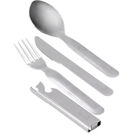 Set příborů z nerezu s držákemCestovní příbory Easy Camp Deluxe můžete jednoduše zasunout do kovového držáku, takže v případě potřeby nemusíte hledat každý příbor v batohu. Sada příborů je vyrobena z odolné nerezové oceli a obsahuje vidličku, lžíci, nůž a držák s otvírákem na láhve a konzervy.Klíčové vlastnosti cestovních příborů Easy Camp Deluxe:Kvalitní nerez ocel zaručuje dlouhou životnost a odolnost příborů.Nůž, lžící i vidličku snadno složíte do pouzdra, které zároveň slouží jako otvírák na konzervy a láhve.Parametry cestovních příborů Easy Camp Deluxe:materiál: nerez ocelvelikost balení: 19 x 5 x 2 cmhmotnost: 145 g