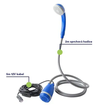 - sprchová hlavice s 2 m hadicí a ponorným čerpadlem s 5 m kabelem.