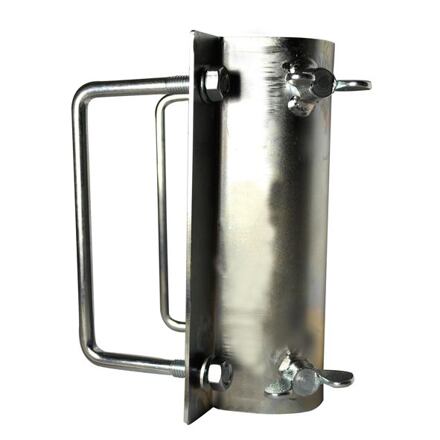 Ocelový držák pro uchycení svislé tyče na oj karavanu Držák výsuvného stožáru vhodný pro uchycení na oj karavanu. Masivní ocelový držák je vhodný pro uchycení stožáru o průměru do 42 mm. Vlastnosti držáku výsuvného stožáru: Pro uchycení stožáru na oj karavanu. Vyroben z kvalitní oceli. Žárově zinkován. Pro uchycení stožáru do ø 42 mm. Parametry: materiál: ocel povrchová úprava: žárové zinkování délka: 20,5 cm šířka: 16,1 cm výška: 13,3 cm hmotnost: 700 g rozměry balení: 20 x 16 x 12 cm