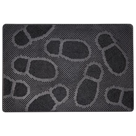 Rohožka ze 100% recyklované gumy LAKO Dancer Gumová rohožka LAKO Dancer je vyrobena ze 100% recyklované gumy a díky speciálně tvarovanému povrchu skvěle zachycuje nečistoty. Výstupky pokrývající celý povrch mají vysoký čistící účinnek. Design otisku bot dodává rohožce atraktivní vzhled. Rohožka je všestranně použitelná, například ve vstupním prostoru nebo venku před vchodem do karavanu či domu. Vlastnosti gumové rohožky LAKO Dancer: Vyrobena ze 100% recyklované gumy. Skvěle zachycuje nečistoty. Design otisku bot dodává atraktivní vzhled. Je všestranně použitelná. Parametry: materiál: guma barva: černá délka: 60 šířka: 40 cm výška: 0,8 cm hmotnost: 900 g