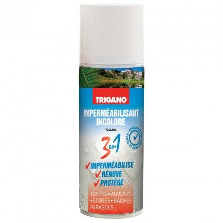 Ochranný přípravek na stany a markýzyBezbarvý impregnační prostředek Trigano o objemu 1000 ml je nezbytnou součástí vašeho vybavení na cestách do přírody. Speciálně vyvinutý přípravek impregnuje, osvěžuje a chrání tkaninu stanů, markýz, rolet, plachet nebo slunečníků. Poskytuje účinnou izolaci proti vodě, špatnému počasí a chrání proti plísním a hmyzu. Přípravek zachovává odolnost a integritu vašeho outdoorového vybavení a tak prodlužuje jeho životnost.Klíčové vlastnosti impregnace stanů Trigano 1000 ml:Bezbarvý hydroizolační prostředek na outdoorové vybavení.Prodyšný, izoluje proti vodě a vlhkosti.Chrání proti plísním a hmyzu, protipožární vlastnosti.Udržuje flexibilitu tkaniny a oživuje barvy.Parametry impregnace stanů Trigano 1000 ml: objem balení: 1000 mlbezbarvá