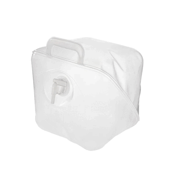 Kanystr na čerstvou vodu x 20 litrů Skládací kanystr pro potraviny, chuťově a pachově neutrální s ventilem s koncovkou 10mm, madlem.