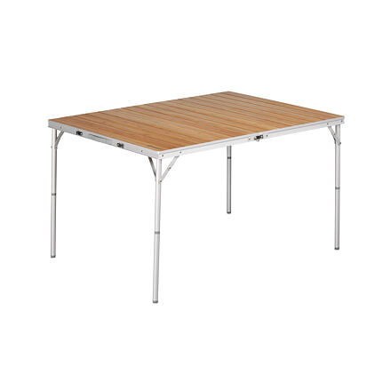 Kempingový stolek s deskou z bambusu Outwell Calgary 90 x 120 cm Elegantní stolek z bambusové kolekce kombinuje přírodní vzhled a moderní design. Stolek je velmi rychle k postavení i složení, má praktické madlo. Deska z bambusu v hliníkovém rámu, zatížení do 30kg. Lehký k přepravě, složený 60 x 90 x 7, výška 69 cm, hmotnost 8,4 kg