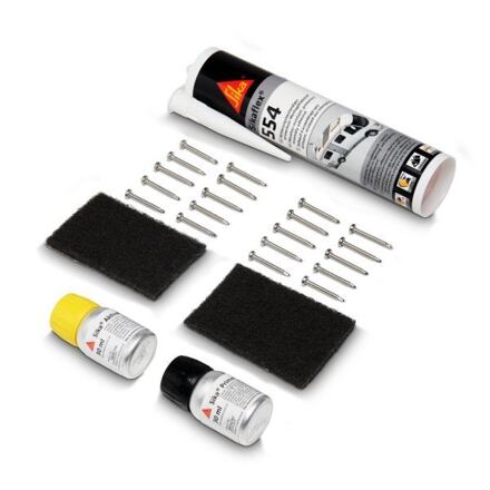Lepící sada Sikaflex 252i + Sika Cleaner + Sika Primer dvojité balení x Sikaflex lepící a upevňovací sada, k nalepení spojperů a montážních dílců na střechu vozidla, sada včetně nerezových šroubů, sada se skládá z čistícího prostředku, Primer 210T, lepidla Sikaflex 252, německého návodu k lepení a lepícího příslušenství, sada pro připevnění 2 modulů