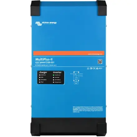 Měnič napětí s nabíječkou Victron Energy MultiPlus–II 3000 VA: Ideální řešení pro náročné energetické aplikaceVictron Energy MultiPlus-II je pokročilý multifunkční měnič a nabíječ, který kombinuje všechny klíčové funkce klasického modelu MultiPlus s dalšími výhodami, jako je podpora externího snímače proudu a rozšíření funkcí PowerControl a PowerAssist. Je ideální pro profesionální námořní, jachtařské, dopravní a ostrovní aplikace, kde není k dispozici distribuční síť.Jak MultiPlus-II využít?MultiPlus-II je navržen pro použití v situacích, kde je vyžadována spolehlivá a stabilní dodávka energie. Umožňuje bezproblémovou integraci do hybridních energetických systémů (ESS), kde může být kombinován se solárními MPPT regulátory nebo síťovými fotovoltaickými měniči. Je vybaven ochranou proti tzv. „anti-islanding", což ho činí vhodným pro bezpečné a efektivní nasazení i v náročných prostředích.Klíčové vlastnosti a parametry MultiPlus-II:Jeden AC vstup pro flexibilní připojeníMultiPlus-II disponuje jedním AC vstupem pro připojení k distribuční síti nebo k externímu generátoru. Pro aplikace, kde jsou potřeba dva AC vstupy, je doporučeno zvolit jednotku Quattro.Dva AC výstupy pro maximální spolehlivostZařízení má dva AC výstupy. První výstup (AC1) zajišťuje nepřerušovanou dodávku energie, a to i při výpadku distribuční sítě nebo generátoru, s přepnutím na bateriové napájení během méně než 20 milisekund. Druhý výstup je aktivní pouze při dostupnosti AC vstupu a slouží pro zátěže, které rychle vybíjejí akumulátory, jako např. ohřívače vody.Pokročilé nabíjení baterií s adaptivním systémemHlavní DC výstup poskytuje inteligentní nabíjení baterií pomocí čtyřfázového procesu. Nabíječka automaticky přizpůsobuje režim nabíjení podle stavu baterie a umožňuje i udržovací nabíjení. Druhý výstup je určen pro nabíjení další baterie, např. startovací baterie generátoru.Výkon bez omezení díky paralelnímu a třífázovému provozuPro aplikace vyžadující vyšší výkon je možné paralelně spojit až 6 jednotek MultiPlus-II. Tři jednotky mohou být konfigurovány pro třífázový provoz, přičemž až 18 jednotek může tvořit jeden třífázový systém.Funkce PowerControl a PowerAssist pro efektivní správu energieFunkce PowerControl zamezuje přetížení AC zdroje snížením nabíjecího proudu při vysokém odběru, zatímco PowerAssist zvyšuje výkon AC zdroje pomocí energie z baterií. Tyto funkce zajišťují plynulý provoz i při omezených možnostech připojení.Solární energie vždy k dispoziciI v případě výpadku distribuční sítě může MultiPlus-II poskytovat AC proud. Je vhodný jak pro off-grid systémy, tak pro systémy trvale připojené k síti, včetně těch, které využívají MPPT regulátory nebo síťové měniče.Snadná konfigurace a vzdálený monitoringJednoduchá konfigurace pro každý systémMultiPlus-II umožňuje rychlé a snadné nastavení pomocí DIP přepínačů nebo softwaru VE.Configure 3. Složitější aplikace lze nakonfigurovat pomocí VE.Bus Quick Configure nebo VE.Bus System Configurator. Umožňuje také integraci s dalšími zařízeními a systémy pro větší energetickou nezávislost.Vzdálený monitoring a správa odkudkoliS pomocí bezplatné aplikace VRM můžete svůj systém monitorovat a ovládat odkudkoli na světě. K tomu slouží ovládací panely jako Cerbo GX, Color Control GX nebo Venus GX, které umožňují přístup přes internet pomocí telefonu, tabletu nebo počítače.Technické parametry:napětí: text: 12Vvýkon: text: 3000VAnabíjecí proud: 120Amaximální vstupní proud: 32Amožnost paralelního a třífázového provozu: anovýstup a vstup: dva AC výstupy, jeden AC vstuppodpora nabíjení baterií: olověné, alkalické, lithiovéfunkce: PowerControl, PowerAssistintegrace do systémů: solární a hybridní systémy