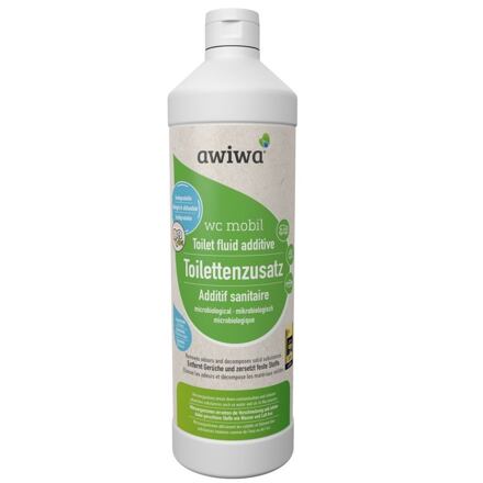 Mikrobiologický přípravek pro snadnější rozklad obsahu odpadní nádržeMikrobiologická toaletní přísada awiwa WC mobil obsahuje vysoce účinnou dávku enzymů a přírodních mikrobů, které rozpouštějí výkaly a hygienický papír, což zajišťuje snadné vyprázdnění nádrže na odpadní vodu bez stříkaní vody: žádné zbytky, žádné ucpání a žádný zápach!Klíčové vlastnosti mikrobiologické hygienické přísady awiwa WC mobil:Přísada nepříjemné pachy nezakrývá, ale přímo odstraňuje.Vytváří hygienicky čistý odpad bez chemikálií, vhodný pro ekologickou likvidaci – obsah odpadní nádrže můžete vyprázdnit do každé toalety.Vhodné pro všechny přenosné toalety v karavanech, obytných vozech nebo lodích.Vysoce ekonomický: 1 l stačí na 20 použití.Parametry mikrobiologické hygienické přísady awiwa WC mobil:objem: 1 lrozměry (⌀ × V): 8 × 27 cmhmotnost: 1,1 kgrozměry balení (Š × V × H): 28 × 8 × 8 cm