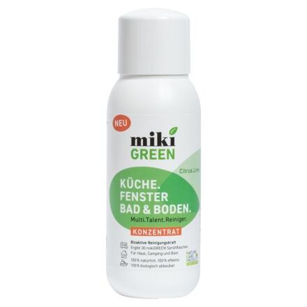Universální mikrobiologický čistič MikiGREEN® Multi Talent Cleaner koncentrátMikiGREEN® Multi Talent Cleaner je udržitelný a ekologický čisticí prostředek určený pro různé povrchy v domácnosti i na cestách. Tento čistič je vytvořen z přírodních složek, což z něj činí ideální volbu pro ty, kteří hledají efektivní a šetrné řešení pro čištění různých povrchů.Klíčové vlastnosti mikrobiologického čističe MikiGREEN®:Univerzální použití. Čistič je vhodný pro širokou škálu povrchů, včetně oken, skla, dřeva, nerezu, obkladů, plastů, keramiky, laminátu a dalších materiálů.Efektivní na skvrny. Skvěle si poradí s odolnými skvrnami, jako je červené víno nebo zvířecí moč, a zároveň eliminuje zápach.Přírodní složení. MikiGREEN® je vyroben z čistě přírodních složek, které zajišťují účinné a zároveň šetrné čištění bez zanechání chemických zbytků.Jednoduché použití. Stačí nastříkat na znečištěný povrch, nechat působit (pokud je to potřeba) a poté setřít. Zanechá povrchy čisté a bez zbytků.Výhody:Ekologické řešení. Díky svému přírodnímu složení je MikiGREEN® šetrný k životnímu prostředí a bezpečný pro použití v domácnosti i během dovolené.Účinný na různé typy nečistot. Ať už jde o běžné čištění nebo odstraňování odolných skvrn, tento čistič poskytuje skvělé výsledky bez agresivních chemikálií.Široká použitelnost. Díky své univerzálnosti je ideální pro různé úkoly v domácnosti, což z něj činí praktický doplněk do každé domácnosti nebo karavanu.Parametry:kapacita: 300 ml/koncentráthmotnost: 370 gvelikost balení: 17 x 6 x 6 cmúdaje o nebezpečnosti: nevyžaduje označení