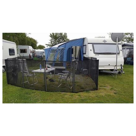 Mobilní plot do kempu HCV lze využít k různým účelům, ať už k ohrazení předstanu nebo vytvoření oploceného výběhu pro vašeho psa. Plot sestává z odolné PVC sítě o gramáži 295 g/m² a ocelových tyčí opatřených trnem pro hladké zakotvení do země. Tyče se do sítě nasouvají skrze všité tunýlky v síti. Jednotlivé díly se spojují pomocí zipů, takže lze základní sadu rozšířit o další dokoupitelné díly. Zipy slouží zároveň k flexibilnímu otevírání/zavírání oploceného prostoru. Výška plotu je 0,9 m. Vlastnosti mobilního plotu do kempu HCV: PVC síťovina (295 g/m²) odolná vůči UV záření pevné ocelové tyče potažené plastem oboustranné zipy pro spojení nekonečného množství plotů možnost dokoupení dalších rozšiřujících dílů a přepravní tašky nízká hmotnost Základní sada mobilního plotu obsahuje: 2 x plot 4 m 9 x vertikální stavěcí tyč Parametry: barva: černá materiál: PVC, ocel rozměry (D x V): 8 x 0,9 m