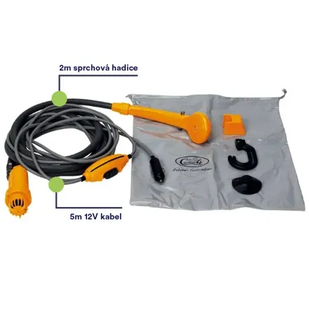 Cestovní sprcha Camp4 Jenny 12 VMobilní sprcha Camp4 Jenny s kabelem o délce 5 m pro připojení do autozapalovače. Je vybavena hadicí o délce 2 m se sprchovou hlavicí a vypínačem pro ovládání čerpadla. Lze přichytit na stěnu vozidla pomocí přísavky. Součástí dodávky je přepravní taška z PVC.Klíčové vlastnosti mobilní sprchy Camp4 Jenny:Má 5 m kabel pro připojení do autozapalovače.Na kabelu je vypínač pro ovládání čerpadla.Sprcha Camp4 je vybavena hadicí o délce 2 m.Přísavka umožňuje přichycení na stěnu vozidla.Součástí dodávky je přepravní taška.Parametry mobilní sprchy Camp4 Jenny:napětí: 12 Vdélka kabelu: 5 mdélka hadice: 2 mhmotnost: 1 kg