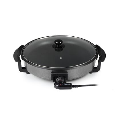 Multifunkční elektrická pánev Tristar 1500 W V pánvi připravíte všechno od ryb po brambory, průměr 40 cm, termostatická regulace, odnímatelný kabel. Antiadhezní povrch, 5 stpňů výkonu, průhledná poklice a protiskluzové nohy.