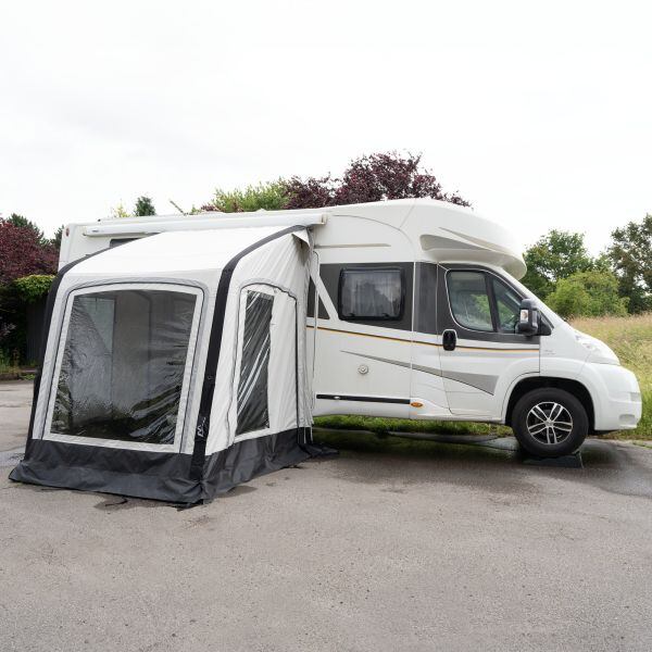 Předstan Westfield s nafukovací konstrukcíNafukovací předstan Westfield Vega 2.0 o šířce 200 cm využijete, pokud na vašich cestách obytným vozem, karavanem nebo dodávkou často měníte místa kempování a chcete, aby se stan dal snadno a rychle postavit a složit.Díky hloubce 220 cm nabízí dostatek prostoru pro kratší pobyt v přírodě. Konstrukce ze vzduchových trubic poskytuje optimální výšku, kterou můžete nastavit v rozmezí 235–255, nebo 255–285 cm. Panoramatická okna vytvářejí obzvláště prostorný pocit. Díky síťovině v oknech je ideální do teplého počasí, protože poskytuje stín, chrání před hmyzem a vytváří příjemné klima ve stanu.Předstan umožňuje připojení ke sluneční střeše Shady Pro, kterou najdete pod záložkou Příslušenství.Stan Vega 2.0 je vyroben z materiálu HydroTech® CottonTouch, obzvláště kvalitního a extrémně snadno udržovatelného materiálu, který je barven v roztoku s polyuretanovým povlakem na vnější i vnitřní straně. Materiál má nejen velmi kvalitní povrchovou úpravu, ale také vynikající odolnost vůči UV záření. Vyznačuje se také svou odolností a byl speciálně vyvinut pro použití při kempování. Ve srovnání s bavlněnými směsmi si HydroTech® CottonTouch zachovává svůj tvar za všech okolností, a to i za měnících se povětrnostních a teplotních podmínek.Klíčové vlastnosti nafukovacího předstanu Westfield Vega 2.0:Jednoduchá a rychlá montáž i demontáž.Připojuje se pomocí kedrové lišty.Je vhodný pro obytná auta a karavany.Výšku stanu lze nastavit.Osazen velkými okny s moskytiérami.Materiál předstanu se snadno udržuje.Obsah balení:stan2 přítlačné tyčevzduchová pumpavzduchové trubicekryt podběhunapínací materiál2 transportní vaky Parametry nafukovacího předstanu Westfield Vega 2.0:barva: šedáurčeno pro: karavany, obytné vozy, dodávkyšířka: 200 cmhloubka: 220 cmvodní sloupec: 6000 mmmateriál: 100% PES polyester, PU zátěr, HydroTech® CottonTouchkonstrukce: vzduchové trubiceINSTALAČNÍ VÝŠKA (VARIANTA)235-255 CM255-285 CMhmotnost24,5 kg25,5 kgrozměry balení100 x 58 x 54 cm100 x 58 x 54 cm