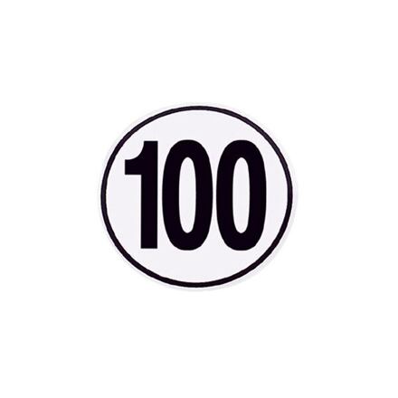 Samolepka maximální rychlost 100 km/h Nálepka Menbaa rychlostní limit 100 km/h samolepící o průměru 20 cm. Parametry: průměr: 20 cm hmotnost: 9 g