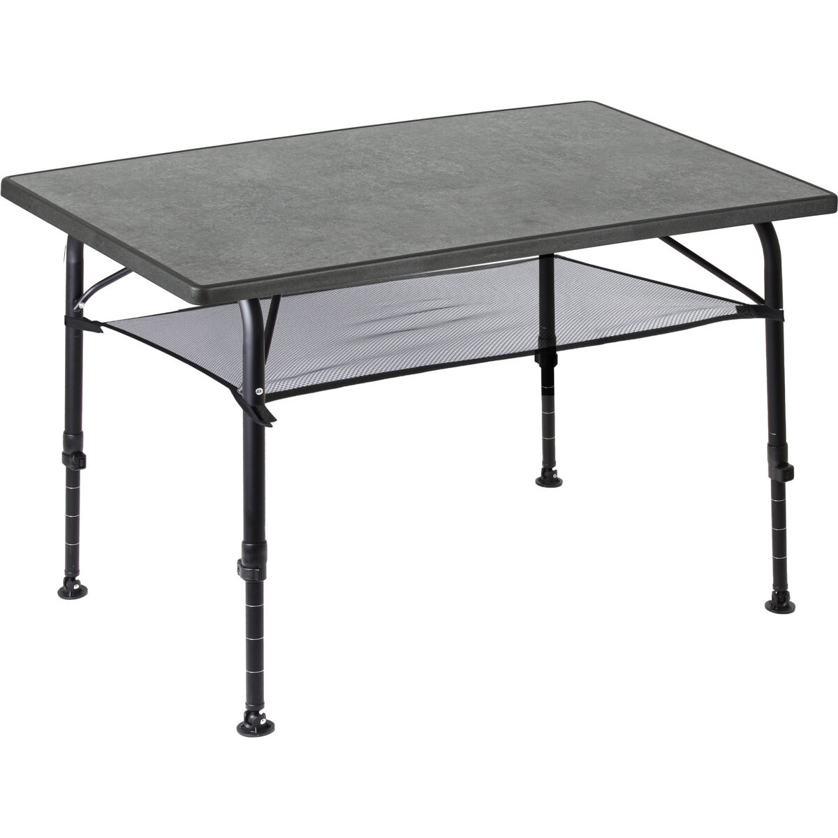 Venkovní stůl se skládací nastavitelnou podnožíStůl Brunner Recreo oceníte pro výjimečnou kvalitu, odolnost a design. Díky inovativnímu a elegantnímu vzhledu se bez problémů přizpůsobí jakémukoli prostředí – ať už v interiéru nebo exteriéru.Speciální skládací hliníkový rám poskytuje výjimečnou stabilitu, kterou oceníte při pobytu v kempu. Vysoce kvalitní deska stolu z materiálu Sevelit, který je známý svou odolností vůči povětrnostním vlivům a mechanickou pevností, bez námahy odolává UV záření, dešti a horku. Ani horké hrnce nebo cigarety nemohou poškodit robustní povrch. Ochrana hran navíc poskytuje ještě větší odolnost proti poškrábání a opotřebení.Klíčové vlastnosti kempingového stolu Brunner Recreo:Ideální stůl pro vnitřní i venkovní použití, díky vysoce kvalitním materiálům je vhodný do nejnáročnějších podmínek.Vysoká odolnost desky vůči UV záření, povětrnostním vlivům a teplu, proti poškrábání a nárazům.Plynule nastavitelná výška stolu pro individuální pohodlí.Snadné čištění – ideální pro kempování a volný čas.Rychlá a snadná montáž bez nářadí.Stůl je vybaven praktickou úložnou sítí.Parametry kempingového stolu Brunner Recreo:barva: šedánosnost: 50 kgvýška: 70 cmmateriál desky: Sevelitmateriál rámu: hliníková trubkaROZMĚRY DESKY (VARIANTA)80 X 60 CM100 X 68 CMhmotnost5,9 kg6,1 kgrozměry balení80 x 60 x 7 cm102 × 68 × 7 cm