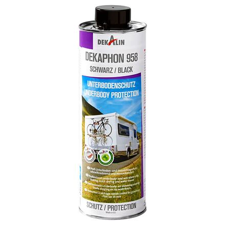 Nástřik podvozku Dekalin Dekaphon 958 1000 ml Nástřik podvozku šetrný k životnímu prostředí chrání naneseným filmem dřevěné a sklolaminátové podvozky proti kamínkům a posypové soli