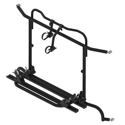 Vlastnosti: hliníková trubka s práškovým nástřikem v antracitové metalíze o 42 mm, 2 hliníkové kolejnice na kolo se 2 držáky pneumatik a 2 upevňovacími popruhy každý, 2 upevňovací drápy
