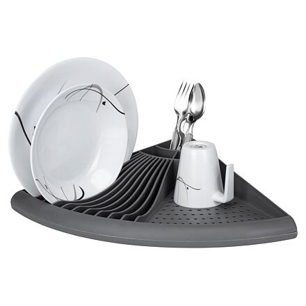 Rohový odkapávač na nádobíOdkapávač na nádobí Brunner DripDish 90 je vhodný pro umístění do rohu na desce kuchyňské linky ve Vašem karavanu nebo obytném voze. Díky trojúhelníkovému tvaru ušetří cenné místo na lince a přesto pojme až 11 talířů, příbory, hrnky a další kuchyňské potřeby.Klíčové vlastnosti odkapávače na nádobí Brunner DripDish 90:Úsporný design, který umožňuje postavit odkapávač do rohu, ušetří místo na lince.Dostatek prostoru pro Vaše nádobí a náčiní.Odnímatelná dolní vanička na vodu.Vyrobeno z odolného termoplastu.Parametry odkapávače na nádobí Brunner DripDish 90:barva: šedámateriál: 100% polypropylenrozměry: 49,5 x 34 x 8,8 cmhmotnost: 850 g
