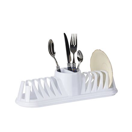 Odkapávač nádobí x Nikki 39 x 12 x 10 cm Moderní odkapávací miska d držákem talířů a příborů zabrání tvorbě vodního kamene na dřezové desce. Pokud se někdy nevyplatí mýt nádobí v myčce, nachází odkapávač uplatnění i v běžné kuchyni.