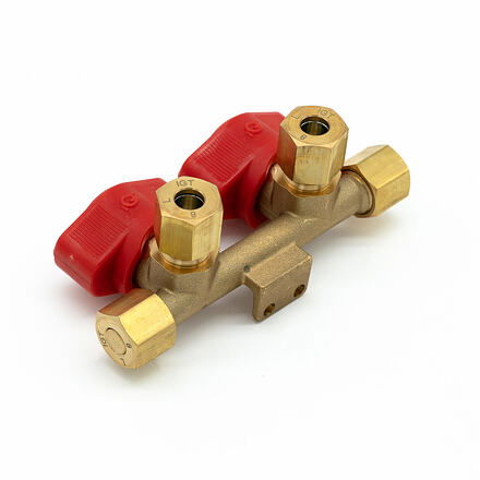 Dvojventil IGT pro rychlé připojení Plynový dvojventil IGT, průměr trubky 8 mm pro připojení dvou spotřebičů najednou a jejich rychlé odpojení od zdroje plynu. Parametry: průměr trubky: 8 mm hmotnost: 289 g