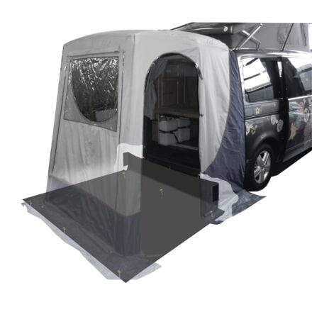 Podlážka zadního stanu Reimo s ochranou proti větru. Podlážka pro stany Reimo Upgrade a Update s integrovanou větrnou zábranou. Snadno se připevňuje k stěnám stanu pomocí suchých zipů. Vhodné pro stany: Stan Reimo Upgrade 2 na zadní výklopné dveře VW T4/T5/T6 Stan Reimo Update pro Mercedes Vito/V-Klasse/Marco Polo od r. 2015 Obsah dodávky: podlážka se 6 oky kolíky 3 plastové háčky pro připevnění k vozidlu páska na suchý zip pro připevnění ke stanu Parametry: materiál: polyethylen PE délka: 240 cm šířka: 210 cm hmotnost: 1,5 kg