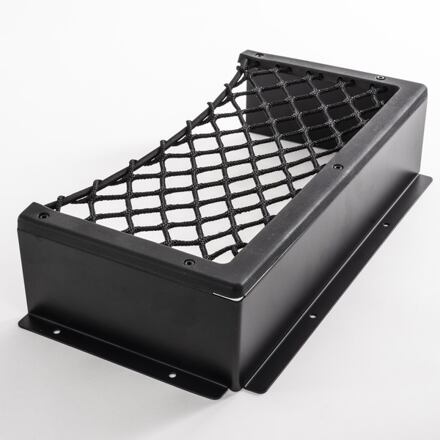 Praktická přihrádka se sítí Carbest Přihrádka Carbest s pevným hliníkovým rámem a elastickou síťovinou. Přihrádka vytvoří další úložný prostor pro nádobí ve vozidle. Přihrádka se dodává předmontovaná se šrouby pro připevnění. Vlastnosti přihrádky Carbest: Má pevný hliníkový rám. Síťovina je přiměřeně elastická. Ideální pro uložení nádobí. Vytvoří další úložný prostor. Dodává se předmontovaná. Parametry: barva: černá materiál rámu: hliník průměr otvorů pro šrouby: 4,5 mm velikost: S M L šířka: 335 mm 395 mm 445 mm výška: 185 mm 200 mm 225 mm hloubka: 90 mm 90 mm 90 mm hmotnost: 0,4 kg 0,5 kg 0,6 kg