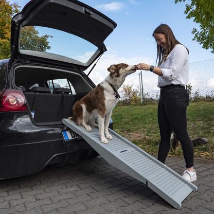 Nástupní skládací rampa pro psy Camp4 Emma Rampa pro psy Camp4 Emma s drážkovanou nástupní plochou a zvýšenými okraji pro bezpečné vystupování a nastupování psa do auta. Rampu je možné složit do malého rozměru a snadno uložit do auta. Je vybavena praktickým madlem pro přenášení a háčkem pro zajištění ve složeném stavu. Vlastnosti rampy pro psy Camp4 Emma: Má bezpečnou drážkovanou nástupní plochou se zvýšenými okraji. Lze složit do malého rozměru. Je vybavena praktickým madlem pro přenášení. Je vybavena háčkem pro zajištění ve složeném stavu. Vyrobena z lehkého polypropylenu. Parametry: materiál: PP polypropylen délka: 152 cm šířka: 40 cm nosnost: 40 kg hmotnost: 3 kg