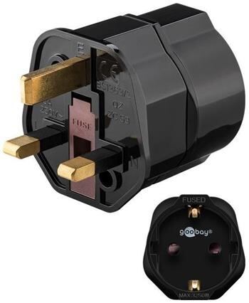 Redukce z anglické zásuvky na českouStandardizovaná Shuko zásuvka 220 V s uzemněním, redukce z anglické zásuvky.