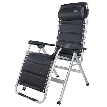 Relaxační křeslo Crespo DELUXE anthrazit do 130kg Relaxační křeslo se zpevněnou hliníkovou konstrukcí nabízi stupňovite nastavitelnou polohu, ergonomicky tvarovaná zádovou opěru a výškově stavitelnou opěrku hlavy. Malé balení a k tomu dostanete v roce 2013 navíc přepravní tašku. Materiál 60pct PVC a 40 pct PES, rozměr 168 x 70 x 54 cm, složeno 95 x 73 x 14,5 cm, hmotnost 8kg.