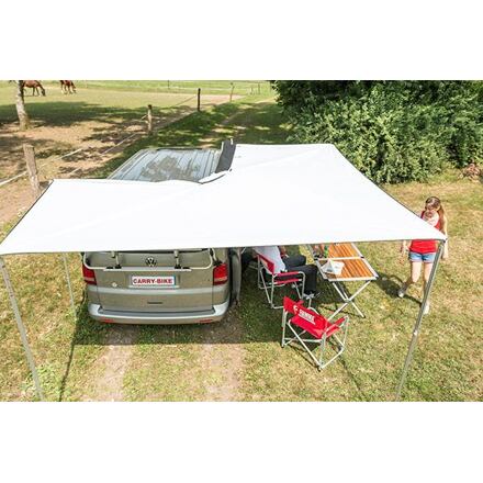 Velká boční a zadní markýza Fiamma Compass 260Praktická. robustní a spolehlivá markýza Fiamma Compass 260 pro Vaše terénní vozidlo nebo dodávku VW T5 a T6 výborně ochrání před sluncem a nepříznivým počasím a snadno se instaluje. Díky vysoce kvalitním materiálům a promyšlenému designu je tato markýza ideálním řešením pro vaše outdoorové dobrodružství a umožní Vám zastínění boční a zadní strany vozidla. Střecha markýzy má šedou barvu, obal je černý nebo stříbrný.Klíčové vlastnosti markýzy Fiamma Compass 260:Pokrývá prostor v rozsahu 270°.Poskytuje stín z boku a ze zadní strany vozidla.Součástí balení jsou kolíky a kotevní lana.Markýzu jednoduše složí a rozloží jedna osoba.Pouzdro je vyrobeno z kvalitní látky odolné proti UV záření.Parametry markýzy Fiamma Compass 260:typ montážebočnípro vozidlaVW T5, T6, SUV, terénníbarva obalučerná nebo stříbrnábarva plátnašedá (Royal Grey) pouzdro (A)260 cmdélka (B)254 cmboční výsuv (C)176 cmzadní výsuv (D)173 cmdélka plachty (E)358 cmdélka plachty (F)370 cminstalační výška (min.)200 cmzastínění9,9 m2hmotnost19,5 kg