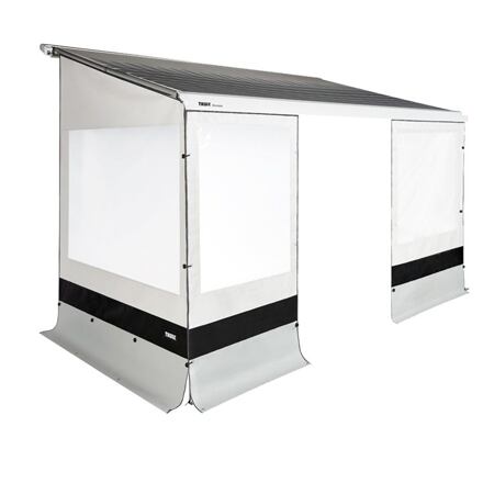 Sada dešťových clon Thule Rain Blocker pro dodávkySada dešťových clon Thule Rain Blocker pro dodávky vybavené markýzami Thule Omnistor 5102 a 4000 s výsuvem 2,6 m. V sadě naleznete 2 x boční dešťovou clonu a 2 x přední dešťovou clonu s délkou 1,27 m.Dešťové clony jsou vyrobeny z voděodolného PVC materiálu, takže pod svou markýzou budete v bezpečí před lijákem i větrem. Díky velkým oknům se nemusíte bát, že přijdete o výhled do krajiny. Potřebné raftery a další montážní materiál naleznete v přiložené luxusní tašce Blocker.Klíčové vlastnosti sady Thule Rain Blocker pro dodávky:Slouží k ochraně před deštěm a větrem a k vytvoření komfortního a soukromého prostoru před Vaší dodávkou.Kompletní sada clon s příslušenstvím pro instalaci.Vyrobeno z voděodolného PVC.Velká okna pro dostatek světla pod markýzou.Vhodné pro markýzy Thule Omnistor řady 5102 a 4000 s výsuvem 2,6 m.Pro většinu dodávek, např. Peugeot Traveller, Citroën Spacetourer, Toyota Proace, Renault Trafic, Volkswagen T5 a T6.Parametry sady Thule Rain Blocker pro dodávky:pro vozidla: Peugeot Traveller, Citroën Spacetourer (Campster), Toyota Proace, Renault Trafic, Volkswagen T5 a T6pro markýzy: Thule Omnistor 5102, Omnistor 4000výsuv markýzy: 2,6 mdélka přední clony: 1,27 minstalační výška: 180 – 199 cmrozměry balení: 120 x 26 x 19 cmhmotnost: 10,5 kg