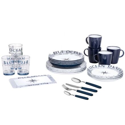 Parametry produktu Sada melaminového nádobí v plastovém boxu Brunner Blue Ocean 36 dílů
