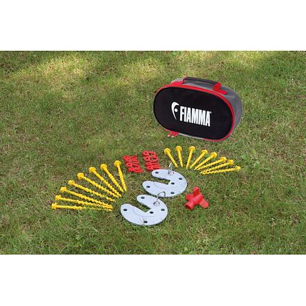 Sada plastových kolíků Fiamma pro stany, předstany a markýzySada plastových kolíků Fiamma je navržena pro bezpečné a efektivní upevnění stanů, předstanů a markýz na měkké a písčité půdě. Tyto robustní šroubovací kolíky jsou vyrobeny z odolného plastu, který je odolný vůči UV záření a zajišťuje dlouhou životnost.Klíčové vlastnosti:Vysoce odolný plast, který je lehčí než kovové kolíky a odolný vůči UV záření.Nový spirálový design poskytuje větší stabilitu a pevnost, což je ideální pro měkké a písčité půdy.Snadné použití. Lze je zašroubovat do země ručně pomocí standardní rukojeti nebo elektrického šroubováku.Systém šroubovacích kolíků zajišťuje pevné upevnění i v náročných podmínkách.Kolíky lze snadno zašroubovat do země a stejně snadno je lze vyjmout jejich odšroubováním.Vhodné pro upevnění dalších kempovacích příslušenství.Sada obsahuje:8x markýzový kolík, 20 cm dlouhé.8x markýzový kolík S, dlouhý 14 cm.8x plastové háky1x montážní rukojeť2x markýzová deska1x taška se zapínáním na zip2x ocelové háčky