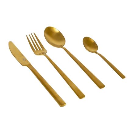 Sada příborů Bo-Camp 16 s industriálním vzhledem je vhodná pro 4 osoby. Příbory jsou vyrobeny z odolné nerezové oceli a lze je mýt v myčce nádobí. Rukojeti příborů se dobře drží v ruce. Sada dodá vašemu prostřenému stolu elegantní vzhled. Vlastnosti sady příborů Bo-Camp 16: Stylová 16 dílná sada je vhodná pro 4 osoby. Vyrobena ze odolné nerezové oceli. Lze mýt v myčce nádobí. Rukojeti se pohodlně drží v ruce. Dodá prostřenému stolu elegantní vzhled. Parametry: barva: zlatá / černá materiál: nerezová ocel hmotnost: 0,51 kg
