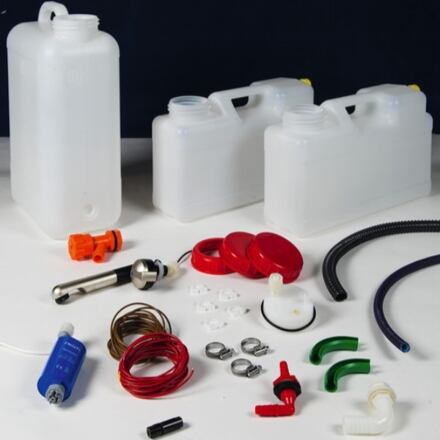 Instalační vodovodní sada s čerpadlem na 12 V ReimoKompletní sada pro jednoduchý vodovodní systém Reimo Travel Style vhodný pro montáž do kuchyňské skříňky Reimo Travel Style pro VW T5. Obsahuje vše potřebné pro vytvoření jednoduchého vodovodního systému s kanystry na čistou a odpadní vodu.Obsah balení:2x kanystr na vodu 12 lkanystr 19 lpříslušenství kanystruvypouštěcí kohoutponorné čerpadlo na 12 V, 15 l/minchromovaný vodovodní kohoutek Reimo 630357hadice na čistou vodu 6 mhadice na odpadní vodu 2,5 mhadicové sponykabel 10 mpojistka 12 Vmontážní materiálParametry:napětí: 12 Vkapacita čerpadla: 15 l/min