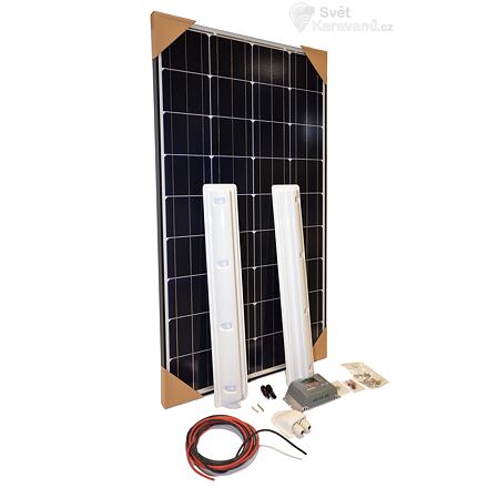 Set solárního panelu Action Plus 130 WSada solárního panelu Action Plus 130 W obsahuje solární panel, všechny potřebné kabely, konektory, průchodky, solární regulátor dobíjení, úhlové upevňovací držáky na střechu (upevňovací sada). To vše za velmi výhodnou cenu! Lepicí materiál nutné dokoupit – doporučujeme lepicí sadu Sikaflex, kterou naleznete v příslušenství tohoto produktu.Souprava je ideální pro použití na velkých karavanech a obytných automobilech, kde výkon využijete pro chod světel, vodního čerpadla, TV, notebooku apod. v průběhu celého roku, nebo při delším cestování.Vlastnosti sady solárního panelu Action Plus 130 W:Ideální pro použití na velkých karavanech a obytných autech.Kompletní sada solárního panelu a příslušenství.Parametry:nominální výkon: 130 Wpdenní výkon: 780 Whampéry / hodina: 7,93 Aampéry / den: až do 55,51 Arozměry: 148,3 x 67,1 x 3,5 cmhmotnost: 11,5 kg
