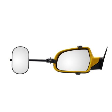 Speciální zpětná zrcátka karavan Emuk. Univerzální venkovní zrcátka vyvinutá pro konkrétní typ tažného auta.Držák zrcátky je vyroben z hliníku opatřeného vrstvou plastu, hlava zrcátka je v plastovém aerodynamickém korpusu..
