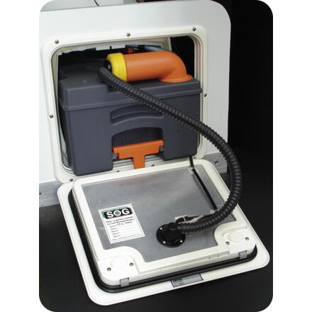 Ventilační systém SOG pro odpadní nádržeOdvětrávací systém SOG pro odpadní nádrže C250 a C260 s montáží do střechy.Kompletní sada obsahuje větrák s 90° pouzdrem, kabeláž s mikrospínačem, odvětrávací hadici, připojovací díl, šrouby a drobné díly.Parametry:provozní napětí 12 VMontáž zařízení SOG se vždy doporučuje svěřit odbornému servisu, například našemu servisu Burimex.