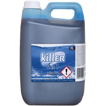 Rozkladová a sanitární chemieTekutá WC chemie Tritech Killer 2v1 je univerzální prostředek pro mobilní a suché toalety, vhodný pro použití do spodní kazety i splachovací nádrže. Přípravek je účinný při teplotách od 0° do +40 °C, při průměrné teplotě 25°C účinkuje přibližně 10 dnů. Prostředek v modré barvě snižuje tvorbu plynů, usazenin a nepříjemného zápachu, urychluje rozklad odpadu, příjemně voní, brání usazování obsahu na stěnách nádrže a rozvoji bakterií.Klíčové vlastnosti tekuté WC chemie Tritech Killer 2v1:Prostředek je vhodný do mobilních a suchých toalet.Aplikuje se do spodní kazety i splachovací nádrže.Účinkuje cca 10 dnů při průměrné teplotě 25°C.Brání usazování obsahu na stěnách nádrže a rozvoji bakterií, omezuje tvorbu plynů, usazenin a nepříjemného zápachu, urychluje rozklad odpadu, příjemně voní.Dávkování:splachovací nádrž: 50 ml přípravkuodpadní kazeta: 50ml přípravkuParametry tekuté WC chemie Tritech Killer 2v1:barva přípravku: modráúčinnost: cca 10 dnů (při průměrné teplotě 25°C)účinkuje: od 0° do +40 °Cobjem: 2 litry nebo 5 litrů