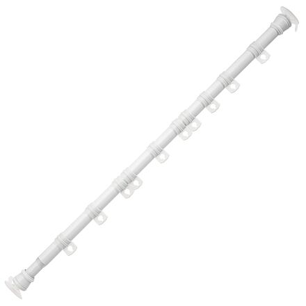 Teleskopická šatní tyč s přísavkami. Obsahuje 10 odnímatelných posuvných háčků na ramínka. Vzhledem k tomu, že oba konce kolejnice jsou vybaveny přísavkami, nezpůsobuje žádné poškození a nevyklouzává z místa ani při připevnění pod úhlem. Můžete jej snadno připevnit otočením kolejnice. Ideální například pro sušení prádla atd.