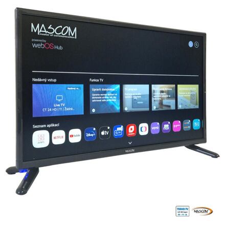 Televizor Mascom od Finlux Travel TV 22″12 V televize Finlux Travel TV s úhlopříčkou 22″ je vhodná do karavanu, obytného auta, dodávky i na loď. TV nabízí celou řadu funkcí, takže během dovolené nepřijdete o váš oblíbený pořad a zabavíte se i v případě špatného počasí.Vlastnosti televize Finlux Travel TV:22″ (55 cm) FULL HD, DVB-T2 a SATELIT, WEB OS SMART, WIFI, 12 V DC22″ (55 cm) Direct LED, FULL HDDVB S2/T2/C, HEVC H.265WebOS aplikace a operační systémHbbTV (iVysílání ČT, Seznam TV, ...), (Červené tlačítko), WiFi, LANNetflix, YouTube, Disney, Prime, ...O2TV, Skylink, SledováníTV, Telly, VoyoMagic ovladač RF/IR s hlasovým ovládánímAnalog PAL/Secam VHF/UHF/KabelPřehrávání multimédií z USBBluetoothInternetový prohlížečČeské a slovenské menuVýstup na sluchátka + reproduktoryARC2 reproduktory12 V DC Travel TVDodáváno včetně dálkového ovladače.Napájecí kabel je nutné objednat samostatně.Parametry:barva: černáúhlopříčka: 22″ / 55 cmrozlišení: Full HD (1920 x 1080)kontrastní poměr: 1000000:1svítivost: 550 cd/m2hudební výkon: 6 Wspotřeba v běžném režimu: 15 Wspotřeba v pohotovostním režimu: 0,2 Wrozměry (Š x V x H): 50 x 33,5 x 13 cmrozměry balení: 57 x 36 x 13 cmhmotnost: 2,3 kg