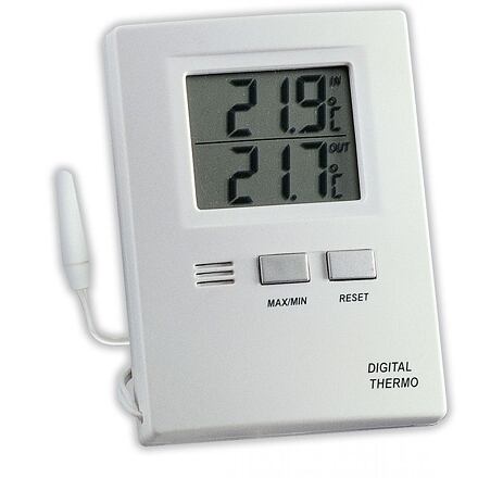 Komplexní měření s teploměrem TFATeploměr s venkovním čidlem TFA měřící vnitřní teplotu (-10 až +50 °C) a venkovní teplotu (-50 až +70 °C). Nastavitelné měření teploty v °C/°F. Délka kabelu 3 m. Teploměr lze zavěsit i postavit. Součástí balení je i baterie 1,5 V AAA.Parametry:napájení: 1,5 V AAA bateriebarva: bíládélka kabelu: 3 mrozměry (Š × V × H): 6,2 × 8,5 × 2 cmhmotnost: 71 g