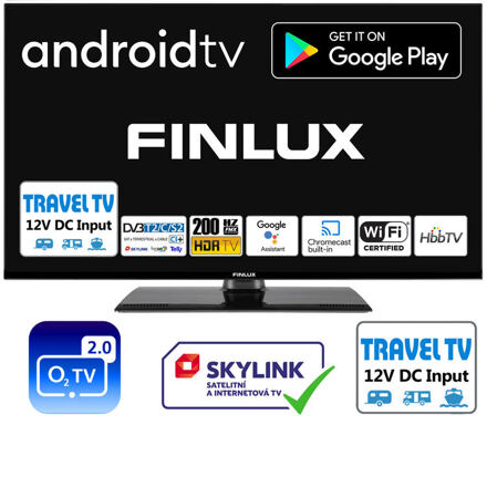 Televize do karavanu Finlux TV Finlux 24″ Android TV, 12 V DC je vhodná pro karavany, obytná auta, dodávky i lodě. Díky technologiím High Dynamic Range (HDR) a Hybrid-Log Gamma nabízí výjimečnou kvalitu barev, kontrastu a jasu pro streamování ze satelitního vysílání DVB-S2. K tomu celou řadu dalších funkcí pro neomezenou televizní zábavu i na cestách. Vlastnosti Televize Finlux 24″ Android TV: úhlopříčka 24″ (61 cm) tenká E‐LED, 12 V DC DVB S2+T2+C, HBB TV (červené tlačítko) HbbTV (Červené tlačítko) iVysílání ČT, apod. Android TV GooglePlay, Chromecast, Google assistant FastScan instalace M7 pro Skylink a FreeSat Nahrávání na USB/HDD, USB MediaPlayer Bluetooth dálkový ovladač s mikrofonem Vestavěné WIFI (2,4 & 5 GHz), Bluetooth Funkce TV: Integrovaná funkce Android TV umožňuje volné stažení a instalaci více než 5000 aplikací z obchodu Google Play včetně NETFLIX, YouTube, HBO GO, PRIME video, O2TV, Sledování TV, Skylink, KuKi, Telly, LepšíTV, Mall a dalších. Vestavěný Chromecast systém umožňuje sdílení aplikací, obrázků, videa a dalšího obsahu z mobilního telefonu nebo tabletu na obrazovku televizoru. Na TV obrazovce tak můžete sledovat třeba i sportovní přenosy z O2TV. Pro Vaše pohodlí a komfort třeba při sledování sdíleného videa, přechází ovládání přehrávání z dotykového displeje mobilu na ovladač televizoru. Google Assistant, hlasový asistent vyhledávání. Chcete pohodlně vyhledat film, pořad nebo televizní kanál? Jednoduše to svému televizoru řekněte a on se o vše postará. Vyhledávání funguje i v českém jazyce. Výsledky vyhledávání se zobrazí na spodní liště obrazovky, stačí jen kliknout a potvrdit. Integrované Wi-Fi připojení optimalizované pro plynulejší a rychlejší HD video streaming. HbbTv červené tlačítko umožňuje snadný přístup k iVysílání ČT, Prima, Nova a dalších stanic i do archivu pro zpětné shlédnutí pořadů (většinou 7 dní nazpět). Bluetooth dálkový ovladač s vestavěným mikrofonem pro využití funkce Google Assistant je součástí příslušenství u Finlux Android TV. Parametry: typ: 24FHMG5771 velikost obrazovky: 24″ (61 cm) rozlišení: HD Ready 1366 x 768 obraz: 200 Hz FMX úhel pohledu: H 178° | V 178° dynamický kontrast: 100 000 : 1 svítivost: 450 cd/m2 zvuk: A2 stereo / Nicam / Dolby digital Plus / Dolby audio processing / SRS TruSurround XT reproduktory: 2 x 2,5 W napájení: 12 V DC z adaptéru 230 V AC 50 Hz provozní příkon: 16 W příkon v režimu StandBy: < 0,5 W třída energetické účinnosti: E jazyk: čeština, slovenština a další barva: černá rozměry bez stojanu (Š x V x H): 553 x 334 x 41/63 mm rozměry se stojanem (Š x V x H): 553 x 365 x 135 mm rozteče upínacích bodů pro montáž držáku na stěnu : VESA 75 x 75 mm, M4 hmotnost bez stojanu: 3,4 kg hmotnost se stojanem: 3,8 kg
