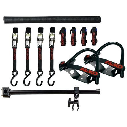 Zajištění skútru na nosiči motocyklů s lehkostí! Univerzální upínací sada Sawiko obsahuje vše potřebné k zajištění skútru na zadním nosiči. Sada je navržena pro standardní nosič motocyklů Sawiko s příčným nosníkem o ø 30 mm. Díky zaklínování kol a uchycení řídítek pomocí přídržného ramene stojí skútr na zadním nosiči zcela bezpečně. Řídítka jsou uchycena pomocí křížové svorky ramene. Dále je skútr upnut pomocí 4 upínacích popruhů. Vlastnosti univerzální upínací sada Sawiko: Obsahuje vše pro zajištění skútru na zadním nosiči. Navržena pro standardní nosič motocyklů Sawiko. Díky zaklínování kol a uchycení řídítek stojí skútr na nosiči zcela bezpečně. Skútr je také upnut pomocí 4 upínacích popruhů. Obsah sady: 2 klíny s popruhy 4 upevňovací popruhy 1 Pouzdo popruhu pro ochranu sedačky 1 přídržné rameno se svorkou Parametry: hmotnost: 4,8 kg roměry balení: 90 x 21 x 16 cm