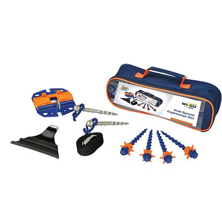 Doplňková sada PeggyPeg k ukotvení markýzy Doplňková sada Peggy Peg pro ukotvení markýzy Wigo Zelte Rolli obsahuje doplňkové nářadí pro upnutí celé markýzy. Sada obsahuje kotevní desku, šroubové kolíky, popruh a příslušenství potřebné pro zajištění markýzy. Obsahuje kotevní desky Peggy Peg Fix&Go 2.0, které umožňují zatažení markýzy bez použití nářadí a šroubové kolíky Peggy Peg Peg&Stop s kontramaticí pro fixaci desky. Dále obsahuje šroubové kolíky Peggy Peg Schlag pro měkké i tvrdé půdy. Sada k markýze Peggy Peg obsahuje: 1 x kotevní desku Peggy Peg Fix&Go 2.0 s hákem 4 x šroubové kolíky Peggy Peg Peg&Stop s kontramaticí 16 cm 2 ks šroubové kolíky Peggy Peg Schlag 15 cm 1 x dvoudílný šroubovák pro šroubové kolíky Peggy Peg 1 x popruh s upínacím okem pro zasunutí do kedrové lišty 1 x transportní tašku ze 100 % polyesteru Parametry: pro markýzy: Wigo Zelte Rolli hmotnost: 680 kg rozměry balení: 36 x 15 x 5 cm