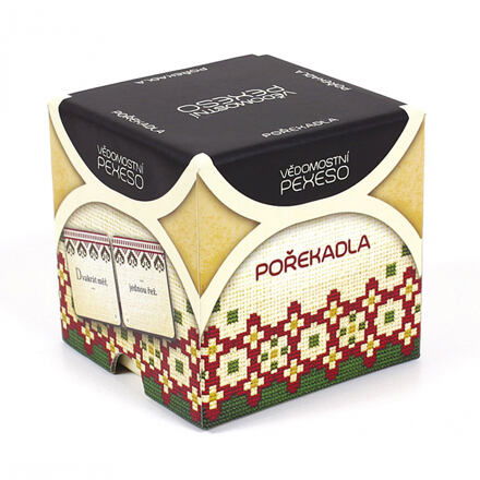 Hra s lidovými pořekadly Albi Vědomostní pexeso Albi – Pořekadla vychází z klasického pexesa, ale nehledají se zde dva stejné obrázky, ale dvě spolu související informace. Při přiložení dvou souvisejících kartiček k sobě se objeví obrázek. Při hře si můžete připomenout a poznat známá i méně známá pořekadla. Hra obsahuje 48 kartiček tvořících 24 párů. Vlastnosti vědomostního pexesa Albi – Pořekadla: Při hře se nehledají stejné obrázky, ale spolu související informace. Související kartičky mají společný obrázek, který se objeví při jejich přiložení k sobě. Tématem jsou známá i méně známá pořekadla. Obsahuje 48 kartiček tvořících 24 párů. Parametry: počet hráčů: 2 - 4 věk hráčů: od 12 let doba hraní: 15 min