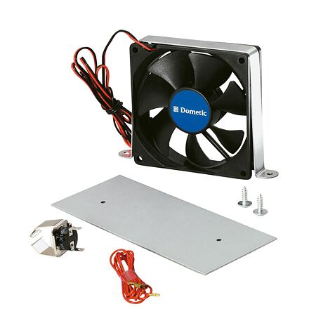 Ventilátor pro zvýšení výkonu absorpčních lednic Dometic Zvyšuje výkon lednic při vysokých teplotách, lehká montáž, termostatická regulace, tichý chod, dodatečná montáž nemá vliv na záruku.