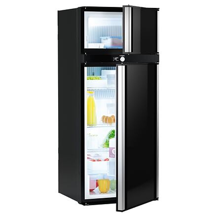 Nová Integrovaná absorpční lednička RMD 10.5 je vybavena opravdu inovativním novinkou, která by měla dát úsměv všem majitelům karavanů a oybtných automobilů. kteří vždy hledají maximální využití jakéhokoliv prostoru. Za pomoci pantů, mohou být dveře chladničky otevřené na obě strany! Příjemný design exteriéru s elegantními hliníkovými dveřmi v celé výšce ledničky. Chladnička nabízí nejlepší chladicí výkonnost své třídy - chladicí jednotka byla testována v Australien Outback, s vnějšími teplotami až do 32 ° C může chladnička ochladit až na +7 ° C, v mrazícím prostoru až do -12 ° C. Jeho provoz je velmi intuitivní díky displeji TFT a otočnému tlačítku. Koncept interiéru s funkcí láhve na víno a LED světelným pásem pro rovnoměrné osvětlení interiéru. RMD 10.5 je na připojení pro 12/230 V a 30 mbar plyn. Výběr energie probíhá automaticky díky automatickému výběru energie (AES).